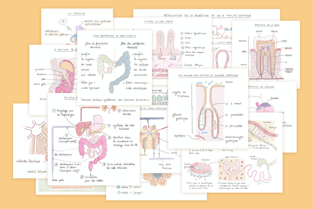 Bonjour ~ Voici le pack d’illustrations sur le système digestif que j’ai dessiné pour mes propres fiches de révisions.
